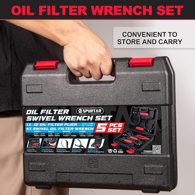 - Easy to Carry & Storage: All oil filter wrench is well organized in a portable case, easy to carry, and safe to store. No longer worry about lost or messy tools. Always ready to hand when needed