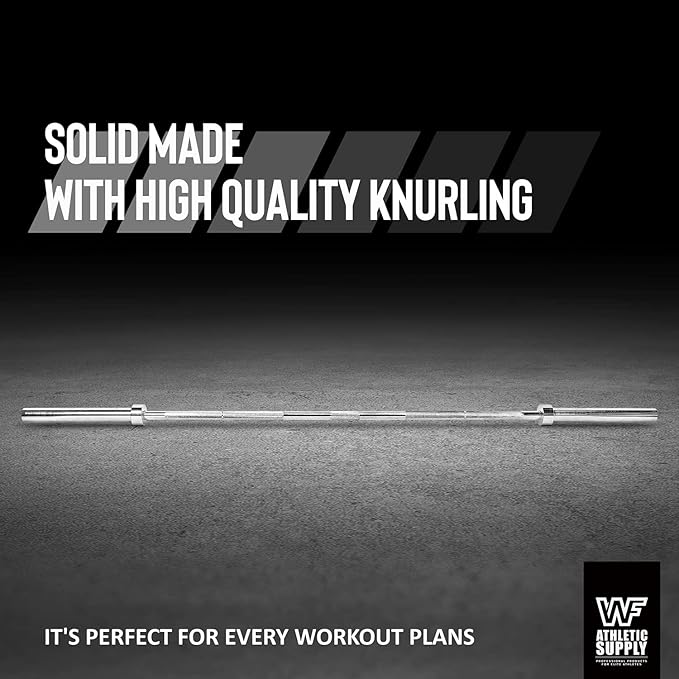WF Athletic Supply 7 ft 2-inch Olympic Weighted Solid Steel Bar Barbell, for Weightlifting/Bench Press/Deadlift and Power Lifting Strength Training, with Rotating Sleeve, Home Gym