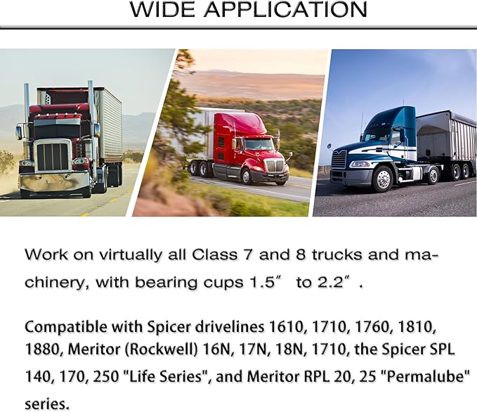- WIDE APPLICATION: This universal joint remover is compatible with Spicer drivelines 1610, 1710, 1760, 1810, 1880, Meritor (Rockwell) 16N, 17N, 18N, 1710, the Spicer SPL 140, 170, 250 "Life Series", and Meritor RPL 20, 25 "Permalube" series.