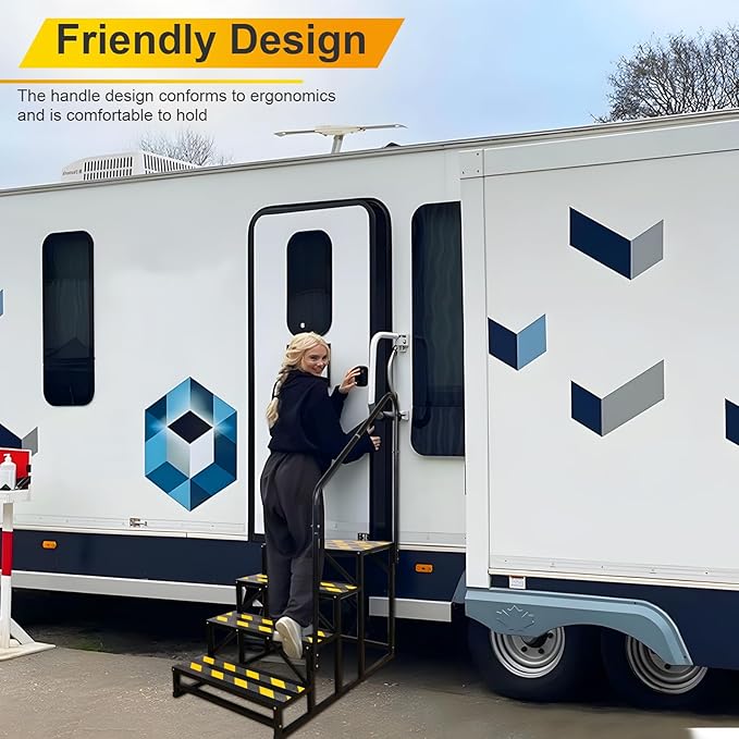 - Enhance Safety and Convenience with Portable Steps and Handrails :Our portable RV steps with handrails are designed to provide unparalleled stability and support, whether you're climbing into your RV, accessing your hot tub, or navigating any other elevated surface. Crafted from durable carbon steel, our handrails are securely attached with robust screws, ensuring reliability and peace of mind during every use.