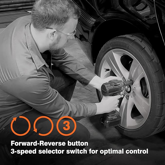 Impulse 1/2" Cordless Impact Wrench Kit with Two 21V Lithium-ion Batteries Included, Hight-torque 797 ft-lb, Charger, 3-Speed, Brushless Motor-type, Design for Heavy-duty Applications