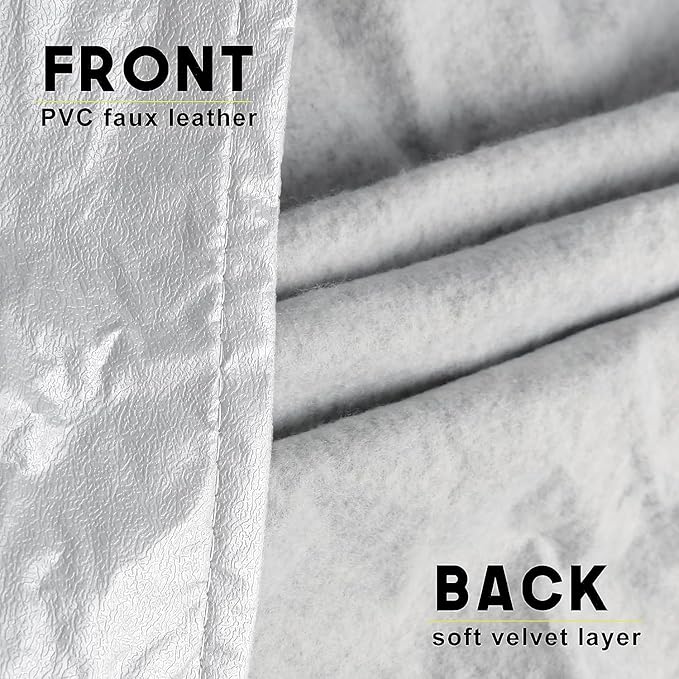 - 🚘【Performance Faux Leather Material】: Crafted from premium faux leather material, this fabric is treated with UV and waterproof coatings, ensuring its adaptability to all weather conditions throughout the seasons. Its resilience extends to being dirt-resistant, heat-resistant, and scratch-resistant. On the reverse side, a velour material offers gentle care, akin to tending to a beloved infant.