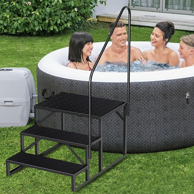 - 【 Hot Tub Steps with Handrail】: To make the camper ladders safer, we installed handrails on one side of the portable RV stairs. Handrails provide extra support as you ascend and descend steps. In addition, the handrail is threaded, which not only maintains its strength but also allows easy removal and storage