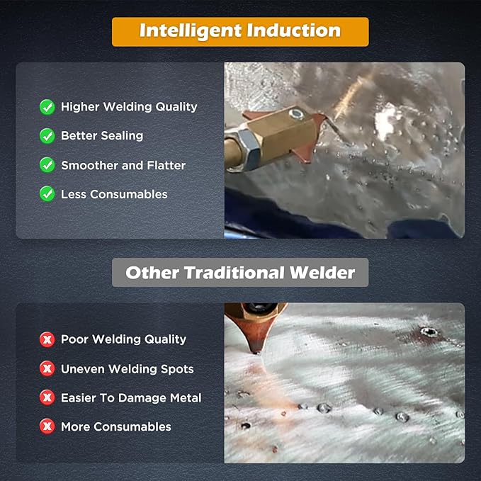 - 【Small Welding Traces & Efficient Welding】Our dent puller welder adopts the latest intelligent induction welding technology to ensure smaller welding spots. The welds are strong and stable, smoother and flatter, which can prevent any damage to the metal coating or paint on the back of your car. With a single-sided welding thickness of 1 - 2mm, It can repair specific parts of the car, avoiding the cumbersome process of large-scale disassembly and replacement of body parts, while maintaining the original structural strength and appearance quality of the vehicle. it's ideal for car body repair work.