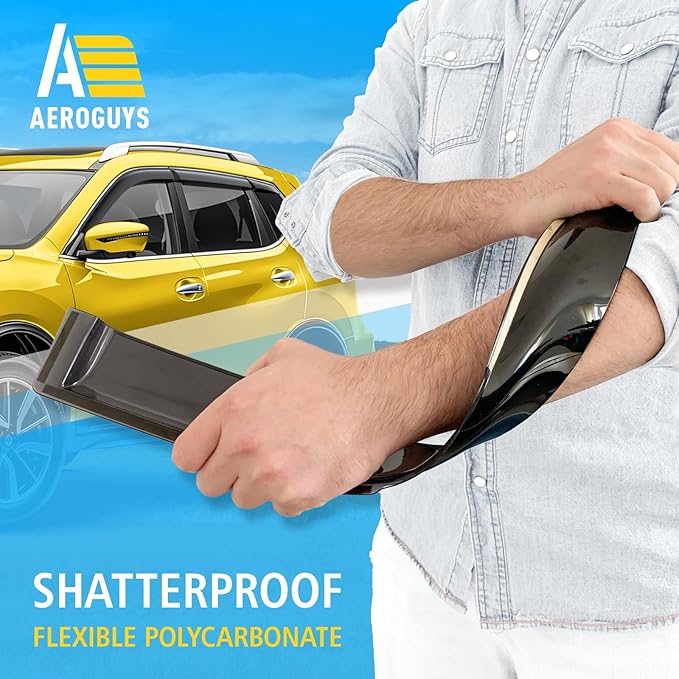 - Incredibly Durable AEROGUYS Auto Window Deflectors – They are made with strong and tough polycarbonate which is clear and scratch-resistant. They also provide UV protection making your ride more comfortable under all weather conditions.