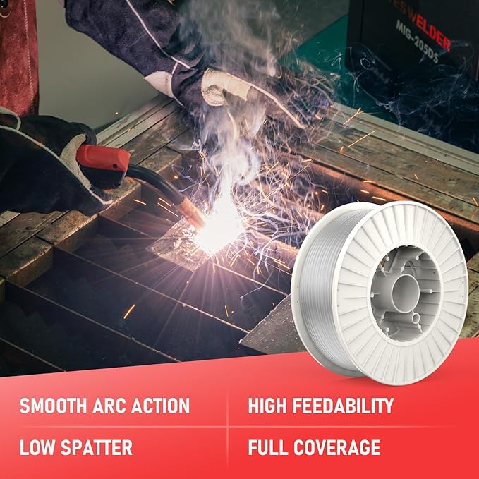- EXCELLENT PERFORMANCE: Experience superior welding performance with this wire. It produces low spatter, achieves full slag formation with easy removal, and results in porosity-free deposits and a consistently good bead appearance.