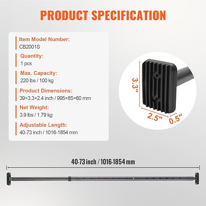 - Wide Adjustable Range: With a 3-inch longer length compared to other market products and an adjustable range of 40–73 inches (1016-1854 mm), our cargo bar provides exceptional versatility. It's designed to fit a variety of vehicle models. Whether you own a family sedan, pickup truck, or SUV, our cargo bar is compatible with most models in this range.