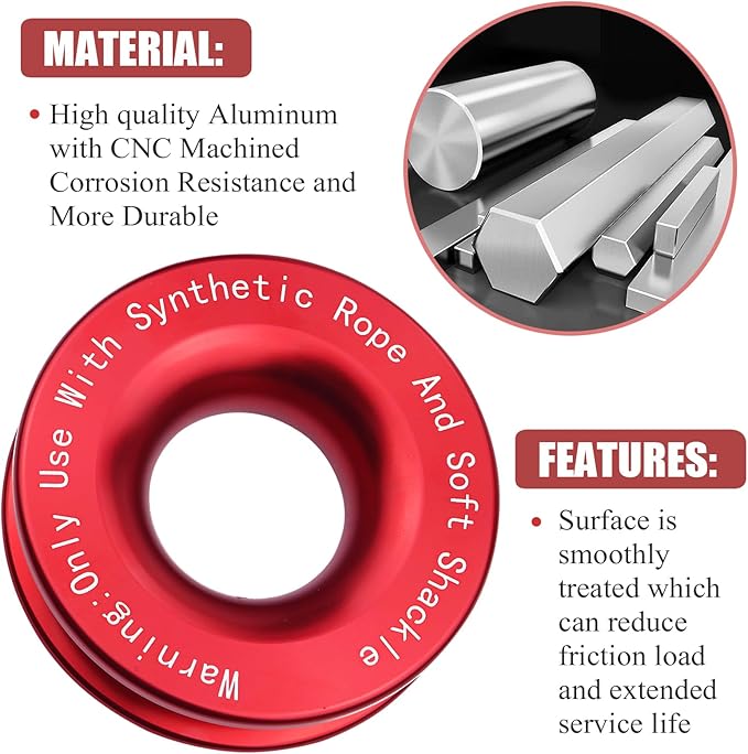 Recovery Ring 66,000 lbs for Winch Snatch Compatible for SUV UTV ATV Off-Road Vehicle and Truck Pulley Towing Ring for Synthetic Rope and Soft Shackle - Red