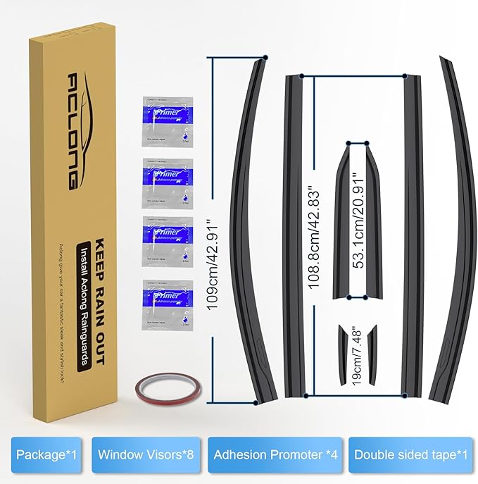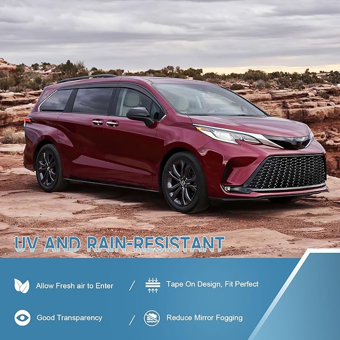 - 【Easy to Install】: NO special hardware, NO drilling necessary, Just in 10-15 Minutes, window visors can be installed. Rain guards for Sienna Includes adhesive tape, Very stable and won't fall off on the highway