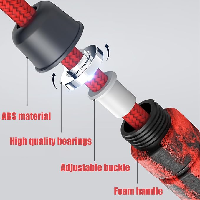 - 【The rope can rotate 360 degrees】The rope is connected to the handle through a high-quality bearing, and when used, the rope itself can rotate relative to the handle, avoiding knots during use and making it easier to use. The rope rotates more smoothly.
