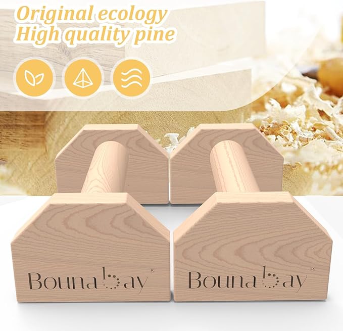 - [Material & Size]: Solid Pine The durable pine material can absorb sweat and create a non-slip and cushioning effect. 25 cm push-up bars model can support a weight of about 150 kg.