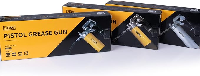 UTOOL Grease Gun, 8000 PSI Heavy Duty Pistol Grip Grease Gun Kit with 14 oz Capacity, 18 Inch Resin Flex Hose, 1 Patented Double Handle Coupler, 1 Basic Coupler