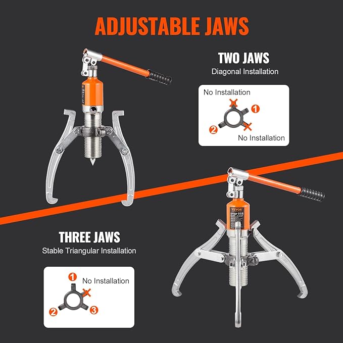 - Industrial-Grade Strength: The pump body is forged through high-temperature quenching, ensuring it remains sturdy even after long-term use, without deformation or bending. The finely processed jaws deliver stronger grip strength. The whole hydraulic pulley puller is crafted from industrial-grade steel with a high-quality rust and corrosion-resistant coating.