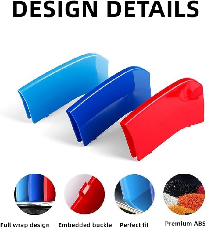 - [Decoration effect] It goes well with the front grid and has a wide variety of colors to match any color exterior decoration. Three-color mixed color (red / blue / light blue), of course, as Bimmer fan, you definitely know the meaning of these three colors. It makes your car look sportier like a performance car.