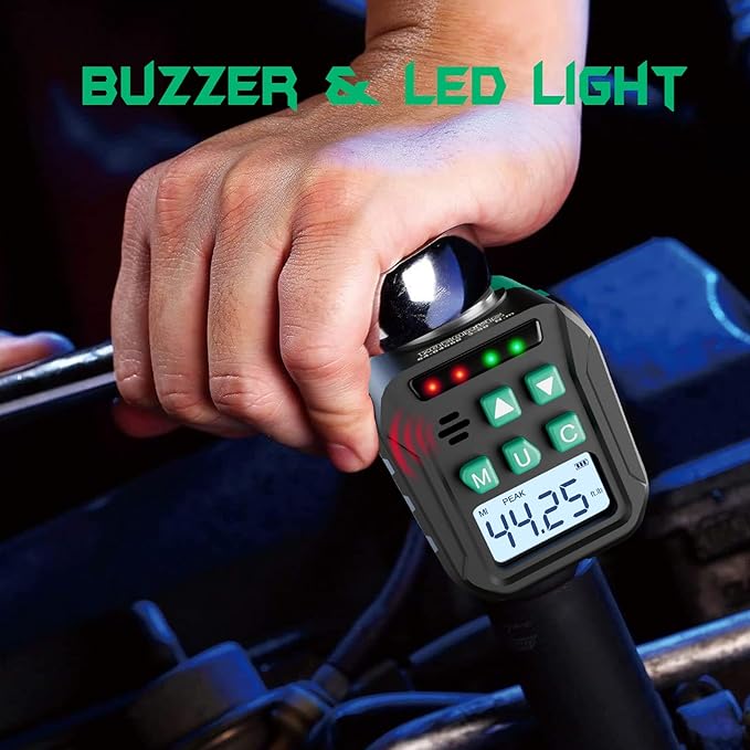 - 【LED Light and Buzzer】This torque wrench adapter has an alarm mode. When you set a certain torque value and start applying force, the torque wrench adapter will issue a warning before reaching your target value, reminding you that the target value is about to be reached. The buzzer will sound a beep and the LED light will change from green to red.