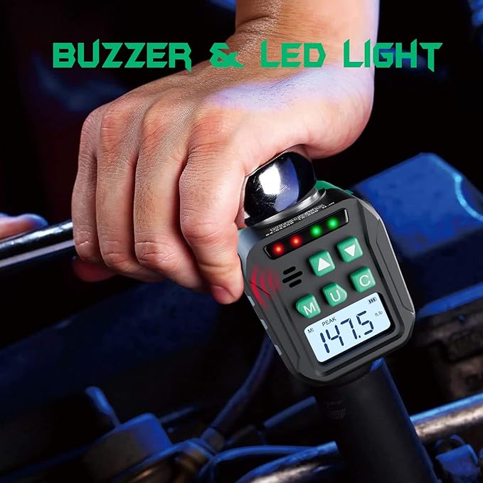 - 【LED Light and Buzzer】This torque wrench adapter has an alarm mode. When you set a certain torque value and start applying force, the torque wrench adapter will issue a warning before reaching your target value, reminding you that the target value is about to be reached. The buzzer will sound a beep and the LED light will change from green to red.