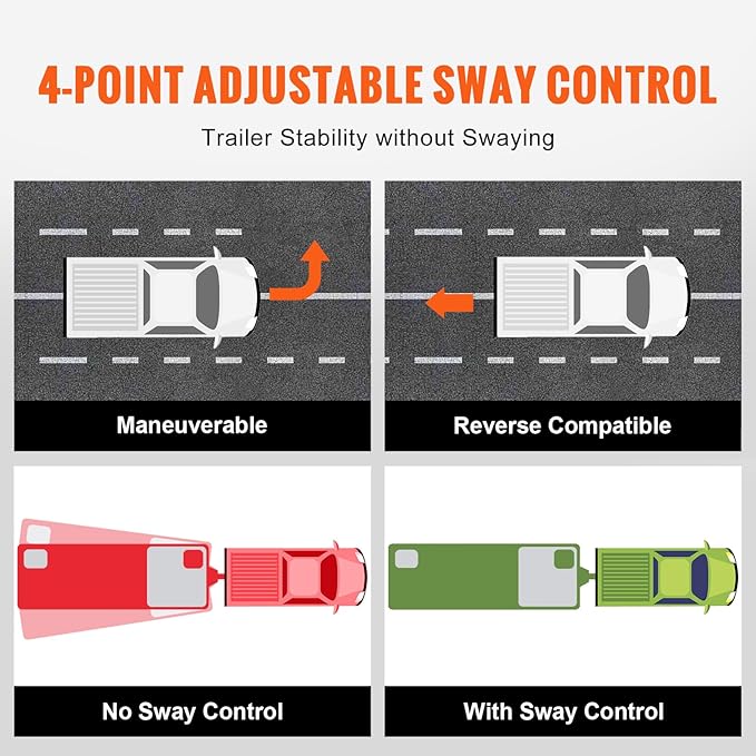 - 4-Point Swivel Control: Provides swivel control to limit lateral movement during trailer towing. It employs fixed support brackets to counteract sway at two different points, achieving a smoother and safer ride, ensuring stable movement without shaking. The four-point swivel structure also facilitates reversing and turning.