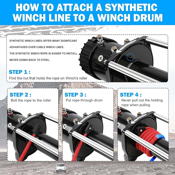 - Easy to install:Compared to metal winch cable, our synthetic rope winch cable winds better and No knots,designed with stainless steel rubber terminal end for easy installation on any winch (terminal end can be removed if not needed). Therefore, using synthetic winch rope will make installation, repair, and replacement much easier