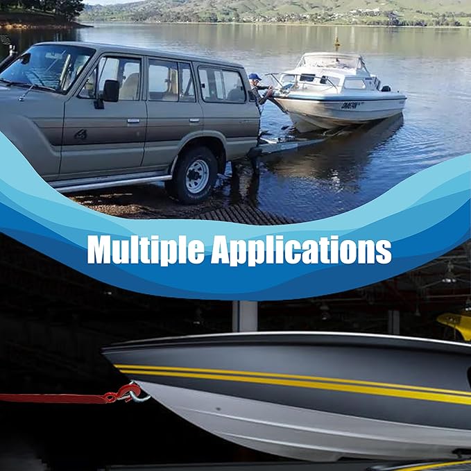 - Perfect Security Design: Our marine grade boat trailer straps measures 2" x 20' long woven polyester webbing and outermost layer painting & the zinc coated winch hook has a spring closure for added security.
