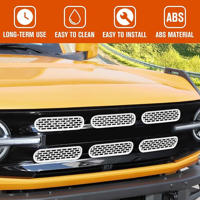 Jimen Compatible with Ford Bronco 2021-2023, 6PCS Front Grille Inserts Mesh Grill Cover Exterior Trim Accessories (White)
