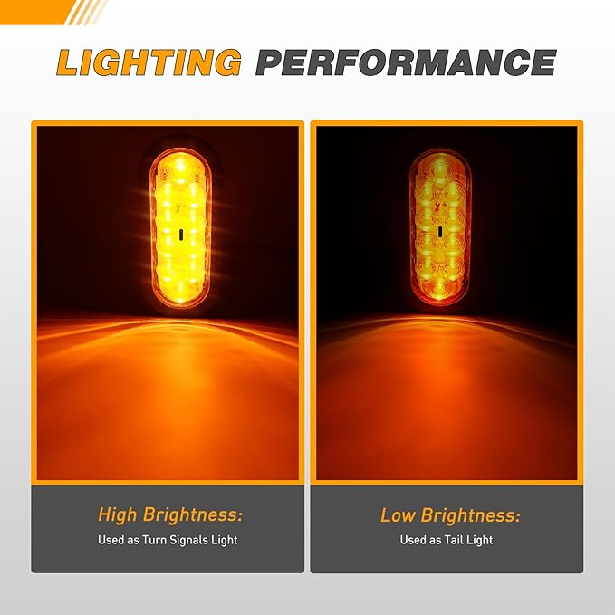 GOOACC 6Inch Oval Trailer Tail Light 2PCS 10LED Amber Turn Signals Lights w/Surface Mount Grommets Plugs IP67 Waterproof for Truck RV Tractor
