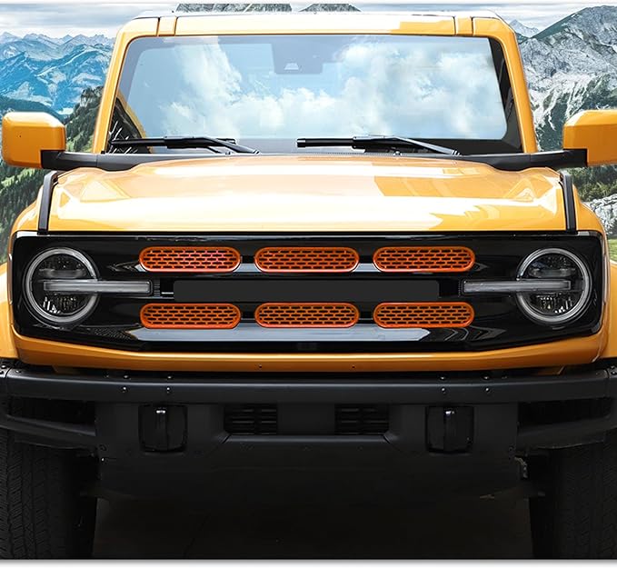 Front Grill Mesh Grille Inserts Cover Frame Trims Kit 6Pcs Fit for Ford Bronco 2021-2024 2/4 Door Exterior Accessories (Orange)