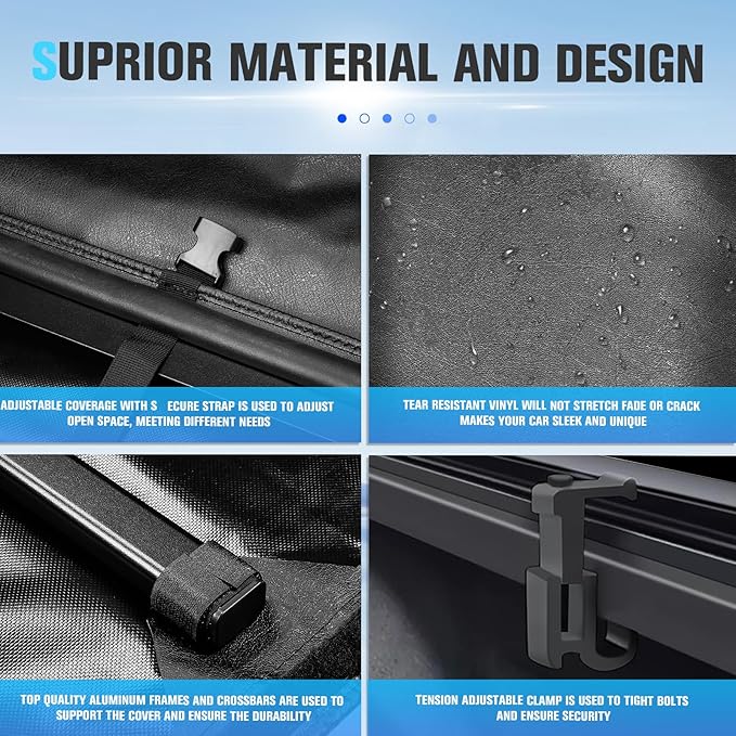 - 【Premium Quality】Made of double-layer PVC and tested for UV protection, it has good tensile performance and is durable. The additional coating helps prevent scratches and provides excellent protection for the entire truck bed.