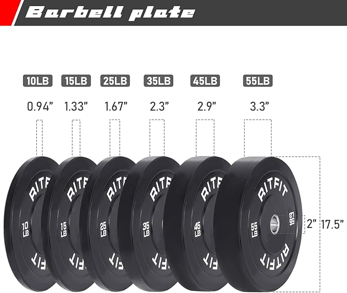 - A Sturdy Home Gym Station - The Home Gym System is made with a heavy-duty steel frame which guarantees a stable structure and long-lasting use. The RitFit PC-410CC Power Cage is 1000 lbs rated with size 44″W x 57.4″L X 85″H. The weight bench is adjustable with a high weight capacity of 1300lbs. The 7 Feet Olympic Barbell Bars with 900lbs weight capacity and the Bumper plates are built to the highest standard and offer safe weight lifting.
