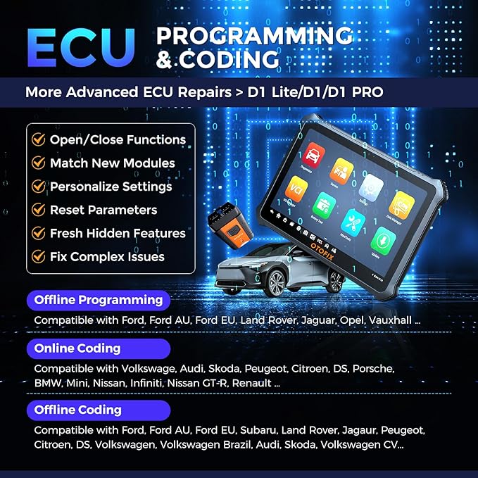 - đ˘[OTOFIX D1 Max, 2025 Essential Auto Scanner] OTOFIX is a new gen. high-end scan tool, which is affordable for everyone in cost and design. OTOFIX relies on Today's technology and holds more powerful hardware than other scanners. This OTOFIX D1 Max features abundant diagnostics like âECU coding, âoffline ECU programming, â40+ service functions, âactive test, âfull-system diagnostics, âWiFi printing, âAuto VIN 2.0, â2-Years Free Update Covered, etc.