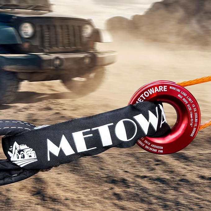 - Snatch Ring: The breaking strength of Metoware snatch recovery ring is approximately 66,000Lbs, which is stronger and sturdy. Suitable for 1/2" or 7/16" soft shackle,and diameters less than 5/8"(16mm) synthetic winch rope. Do not use with steel cables.