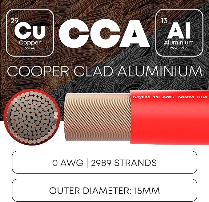 - 1/0 GAUGE CCA WIRE - COPPER CLAD ALUMINUM: Our primary cable wire is crafted from copper clad Aluminum (CCA), offering an economical and highly efficient conductor of power. CCA is ideal for applications requiring ample power transfer, such as car audio and marine speaker wire installations.