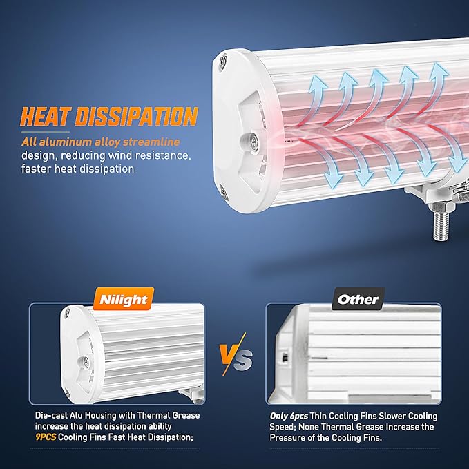 - 【Excellent Performance】Made of corrosion-resistant casting aluminum alloy, upgraded PC lens over 90% light transmittance. Also, 9pcs cooling fins to dissipate heat faster