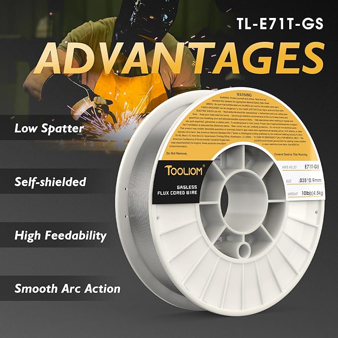 TOOLIOM E71T-GS .035" Diameter 10-Pound Spool Flux Core Self-shielded MIG Welding Wire for Carbon Steel 2 PCS