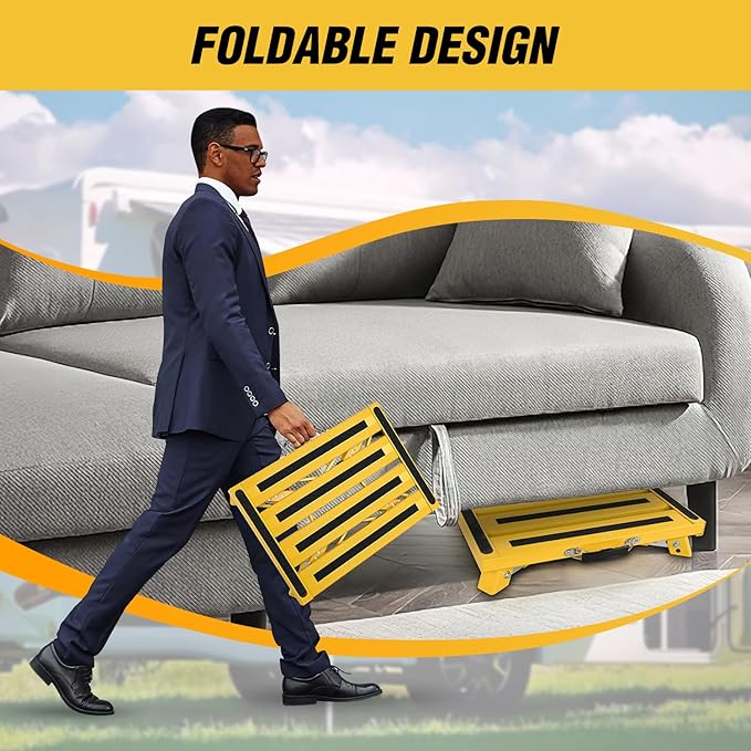 - PORTABLE AND EASY TO STORE: Folding RV stool measures only 16.6" X 11.8" X 2.8". Whether it's for RV, home or office, only a little free space is needed for storage. There is a portable handle on the side for easy portability.