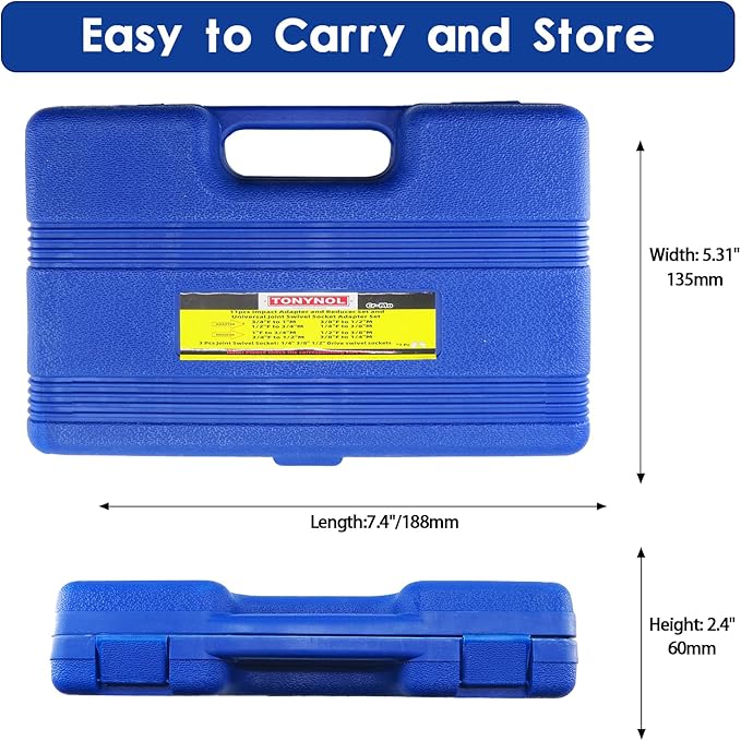 - 【DURABLE & EASILY IDENTIFIABLE】:TONYNOL socket adapter set stands out with its black manganese phosphate coating, providing excellent corrosion and rust resistance for long-lasting use. Laser markings make it easy to identify and quickly find the right adapter.