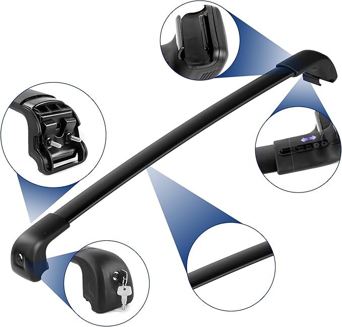 - 【Easy to install】Installation is simple and fast,no drilling required during Use Corresponding installation tools and install the crossbar and the parts on the roof rails according to the installation instructions. The entire installation process only need 10-15 minutes.