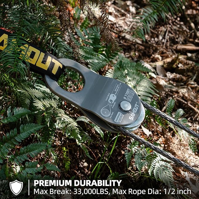 - [Application 1] Doubles Winch Pulling Power by connecting Pulley System in proper way. In some certain terrain, stucked vehicles might face unexpected friction that exceeds winch ratings, you need SAMOUT Snatch Block to double your winch power.