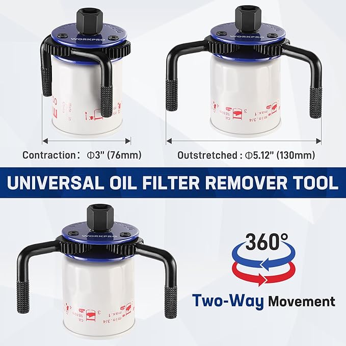 - Easy to Use with Ratchet or Wrench – Compatible with 3/8" & 1/2" ratchets, extensions, and 7/8" wrenches, this universal adjustable oil filter wrench provides extra leverage for quicker, safer, and more convenient oil changes