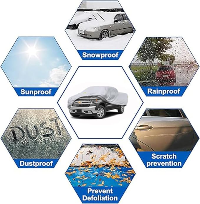 - 【All-weather protection】Kaugung weatherproof car cover provide overall protection for your vehicle from sun, uv, dust, snow, fallen leaves, industrial pollution, bird droppings, pollen, animals, acid rain and extreme weather. Suitable for outdoor and indoor use.