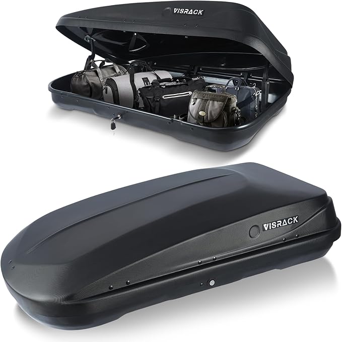- 🚙The roof box is manufactured from sturdy ABS and PMMA material for long-lasting use, able to protect your valuables from exposure to the elements and can load 130 lbs capacity, suitable for round, square and most aerodynamic bars.