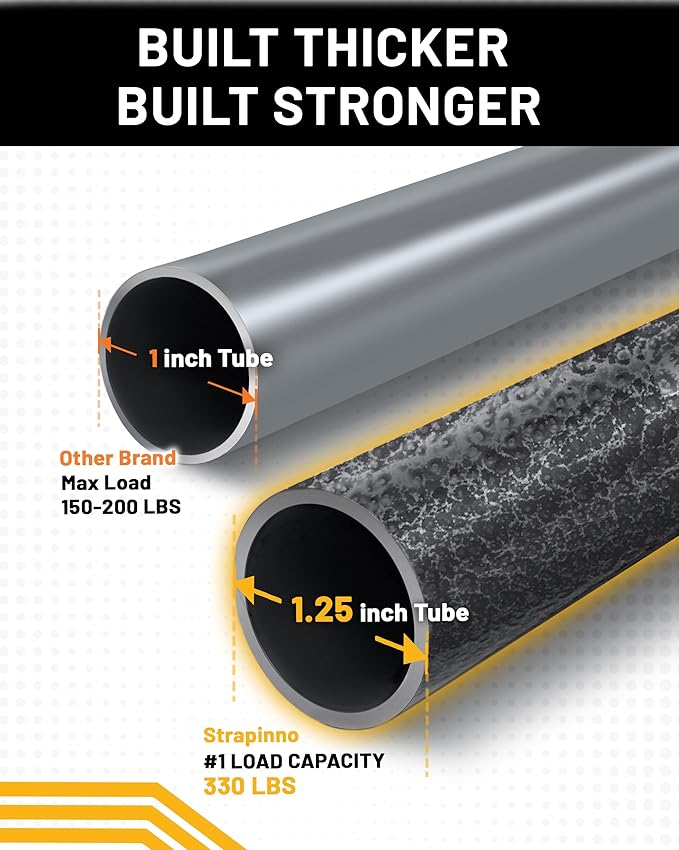 Strapinno - Ratcheting Cargo Bar 44"-74", Non-Slip Truck Bed Divider, Easy Setup, Strong 1.25" Tube, Adjustable Stabilizer for Pickup Trucks