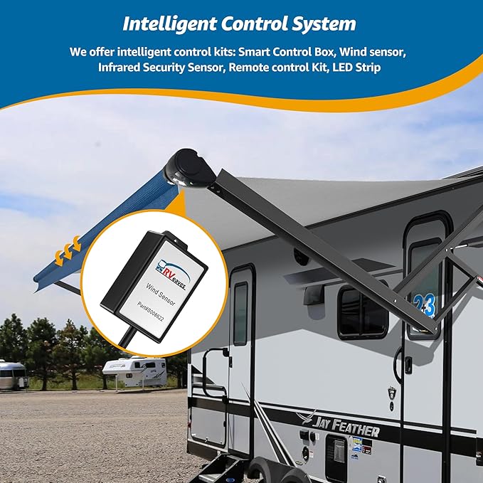 - AUTOMATIC PROTECTION Wind sensor automatically retracts awning during high winds to prevent damage. so your RV's awning equipment doesn't get damaged while you're gone.
