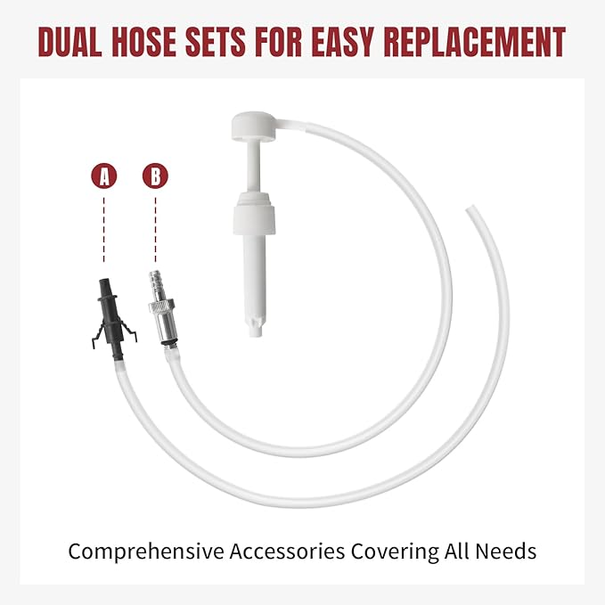 - Easy Change - includes 2 long fill hoses, allowing for easy and convenient switching between different liquids, allowing for quick and efficient fluid transfers.