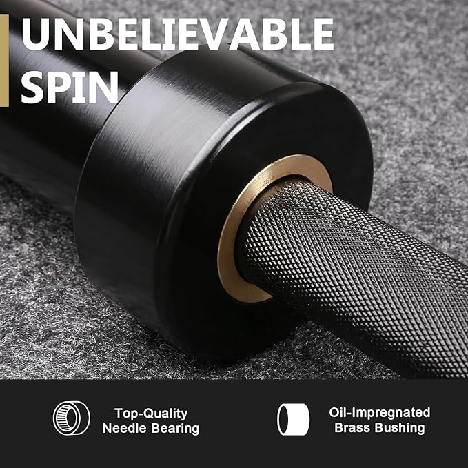 - Ultra-Smooth Spin: Needle bearing and bushing hybrid Olympic bar delivers effortless rotation with zero maintenance. Snap-ring design guarantees lifelong stability.