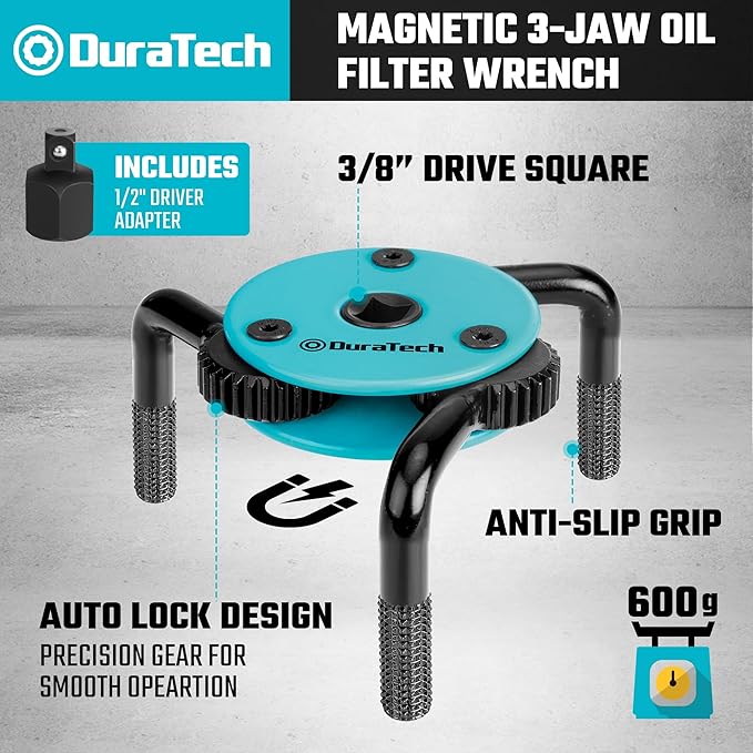 DURATECH Adjustable Oil Filter Wrench, Magnetic 3-Jaw Oil Filter Removal Tool, Large Sizes from 3" to 5.51"(76mm to 140mm), Ideal for Cars, Trucks, Tractor
