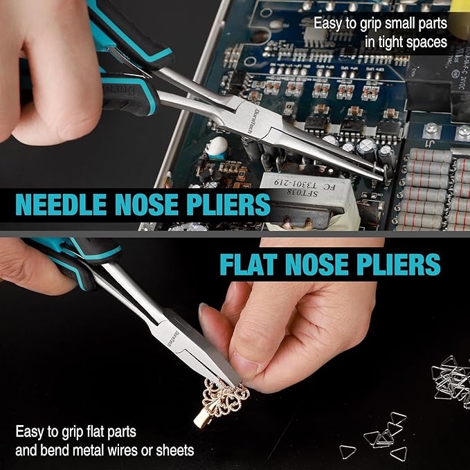 - Versatile Utility: With their combination of long-reach design and compact size, these small long-reach pliers are ideal for precise work in confined spaces. This mini pliers set includes multiple pliers perfect for tasks such as jewelry making, wire cutting, wire bending, small object gripping, electronic assembly or repair, etc.
