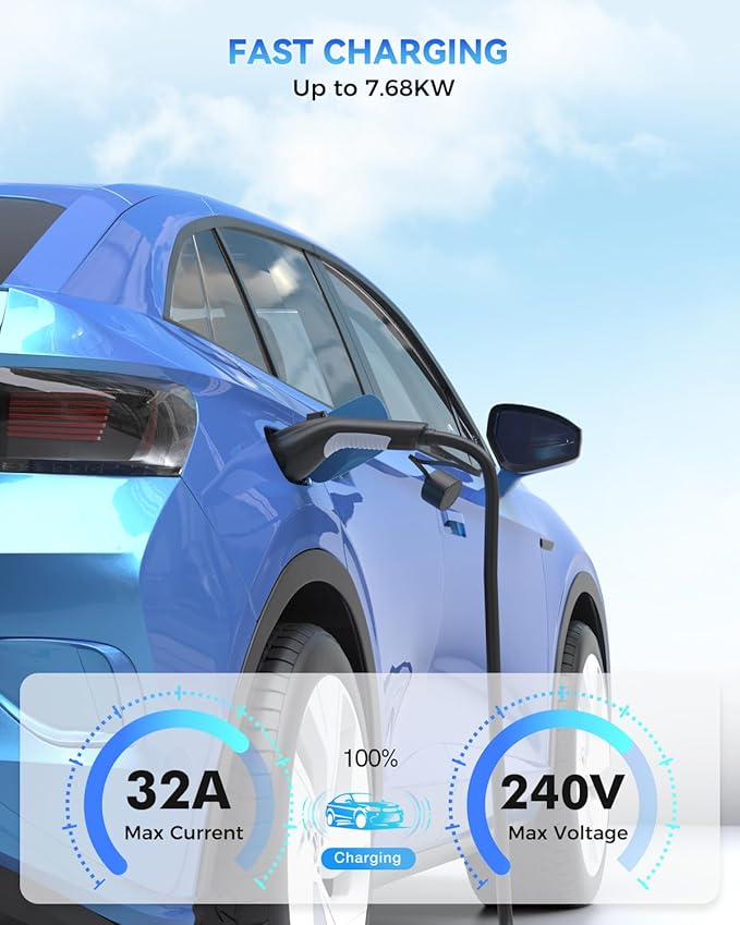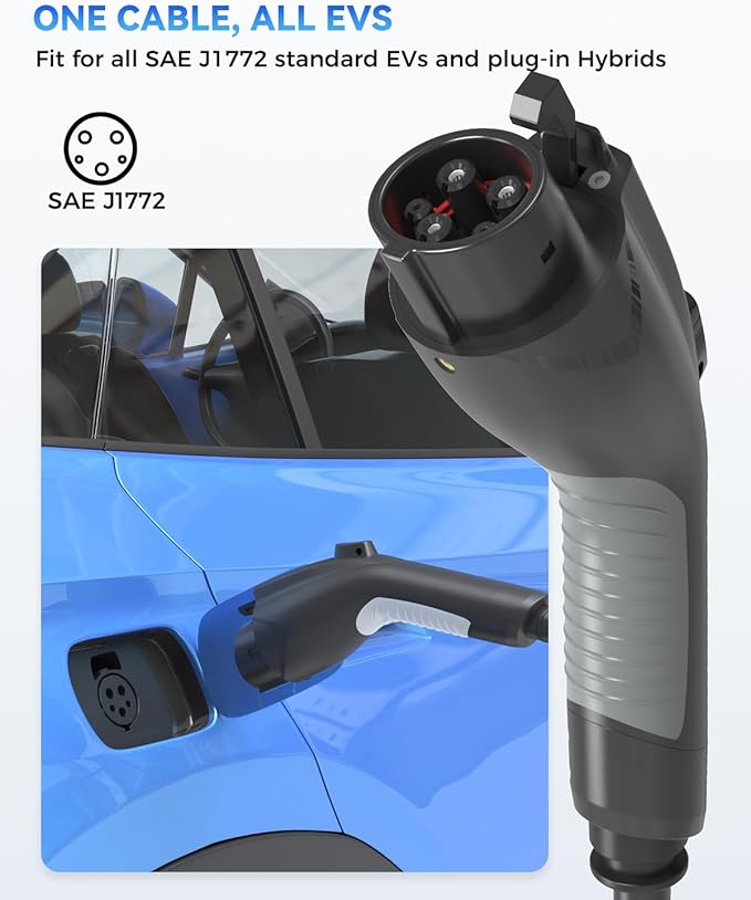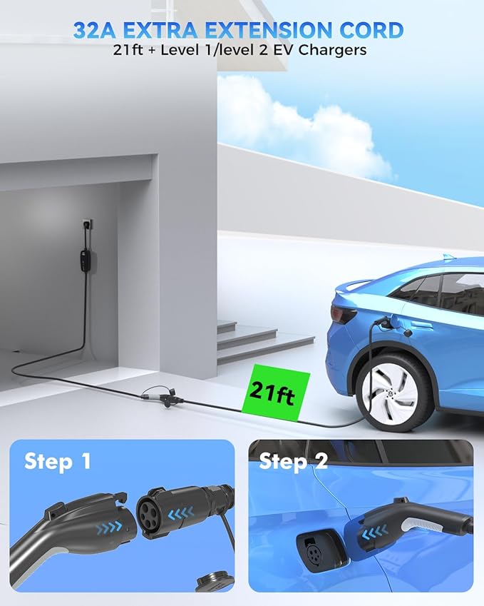 - 【Powerful 32Amp EV Charging Extension Cord】This Level 2 J1772 extension cable supports up to 32 amps, offering powerful and reliable charging with no power loss. Charge your EV/PHEV quickly and efficiently, getting you back on the road fast