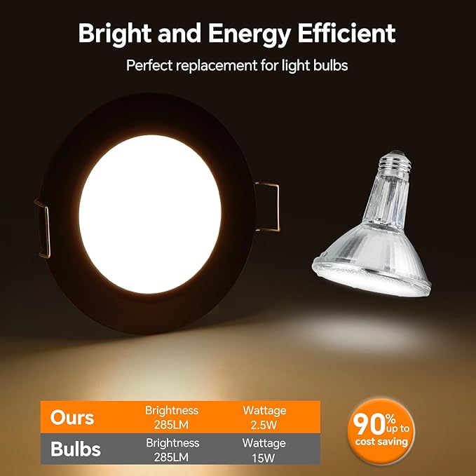 - Shock-proof Flush Mounting: Installation is easy and fast, drill a 2-1/2" cutout, 2 stainless spring clamp firmly fix the light to ceiling or under cabinet, very sturdy and vibration-proof