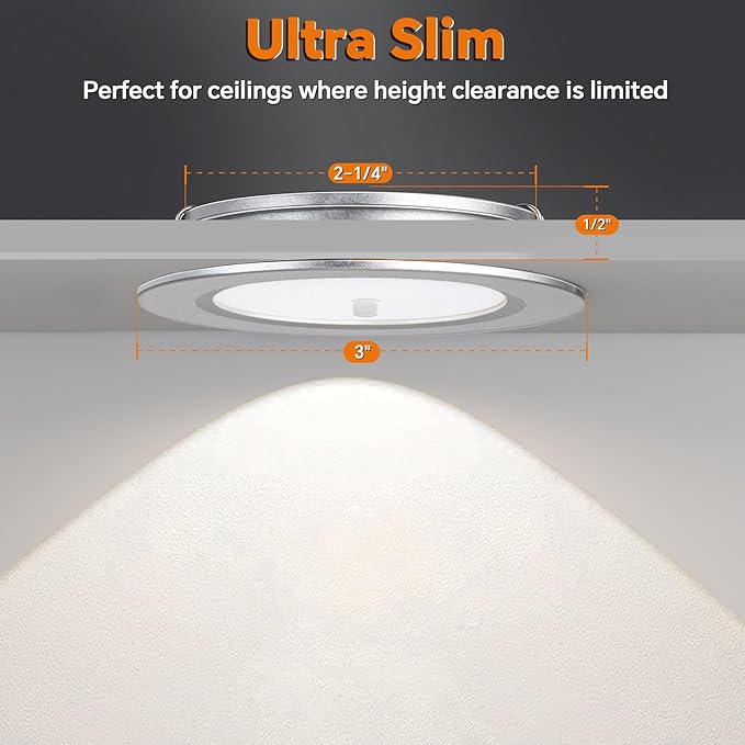 - Clean Modern Looking: Slimline design, only 5/8" height ceiling dome light is perfect for low clearance ceiling application. The light fixture sits flush with ceiling, stylish clean look