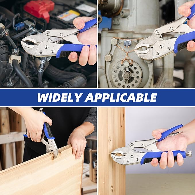 - 【Package includes】10-inch curved jaw locking plier, ideal for tightening, clamping, twisting, and turning flat objects such as sheet metal.